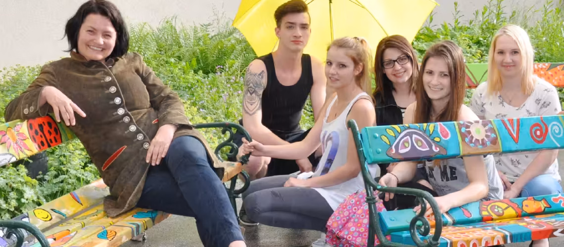 „Malworkshops mit Lisa Wolf sind für die Schülerinnen und Schüler der Landesberufsschule Waldegg immer ein Gewinn! Als Schulleiterin gefällt es mir, wenn etwas Bleibendes geschaffen wird, das uns nachhaltig erfreut und unsere Umgebung verschönert.
